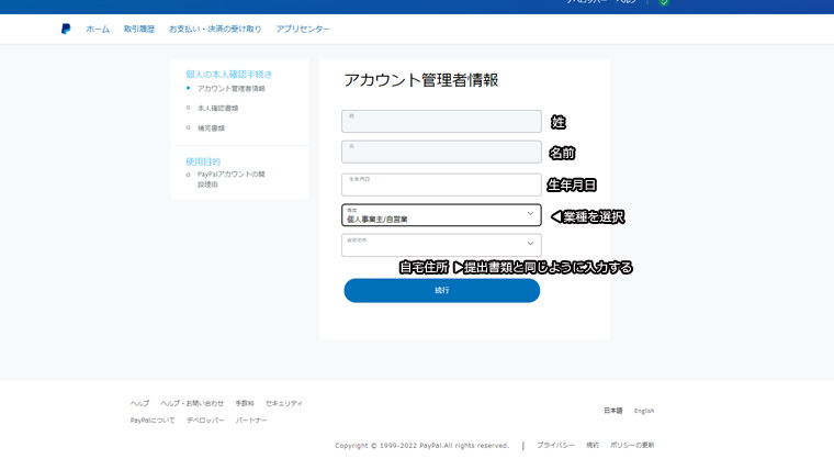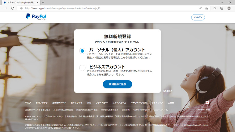 ペイパル「ビジネスアカウント(個人用)」(新規登録)作成方法