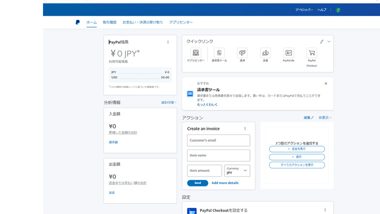 「パーソナルアカウント」では、商品の購入、支払いには利用できますが、決済の受付はできません。