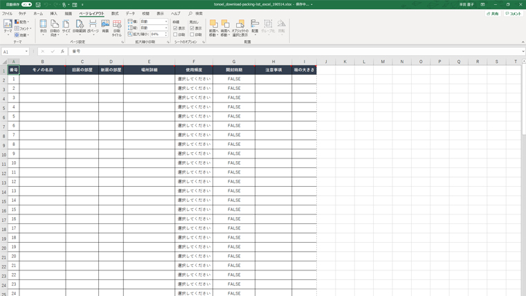 ここでは「tonoel_download-packing-list_excel_190513」というタイトルにしています。