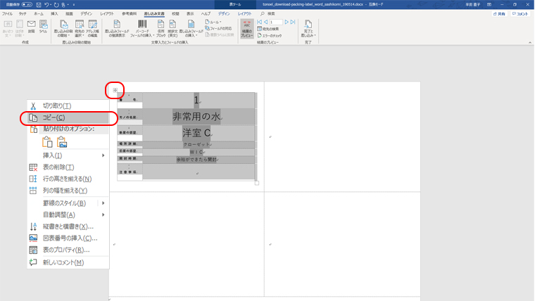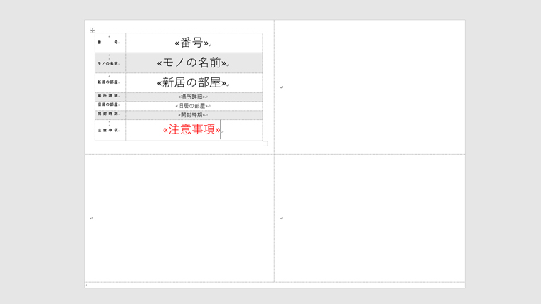 作成した表ラベルのレイアウトを、残りのラベル枠に展開していきます。