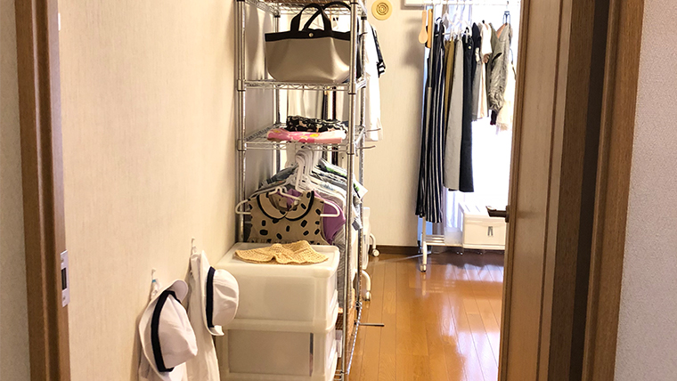 ベランダに面した居室を1室まるまるファミリークローゼットとして使用することにしました。