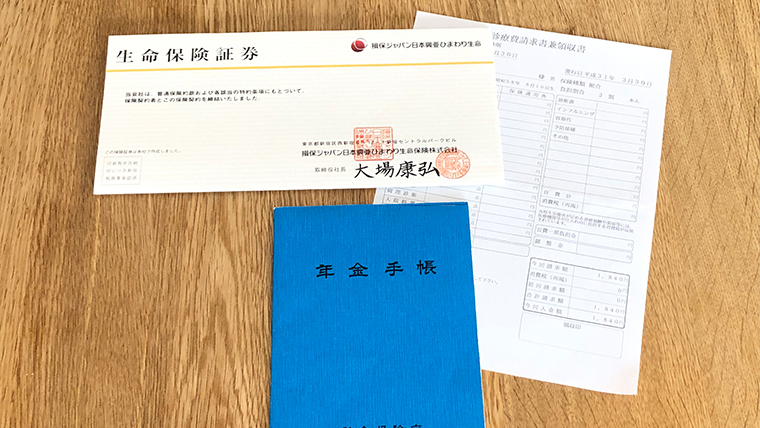 年金手帳や保険証書も、再発行が難しい大切なモノなので、もちろん保存します。