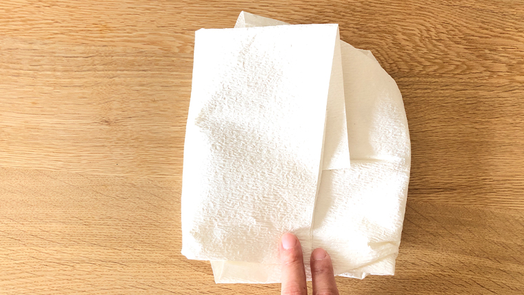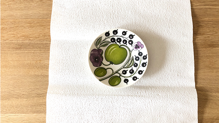 お皿は緩衝用のクレープ紙(新聞紙)の中央に載せ、四方を折り畳んでいきます。
