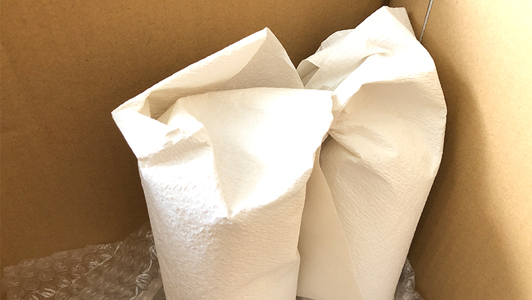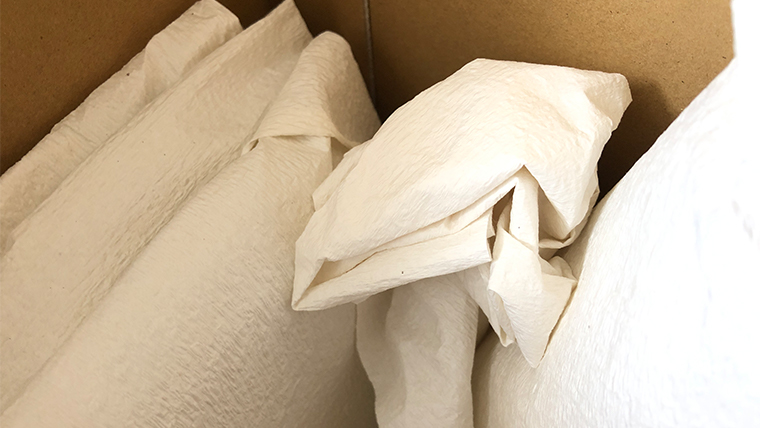 箱に詰めるときは、ダンボールの底にクッションとなるように、新聞紙や緩衝材を厚めに敷きます。