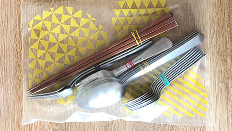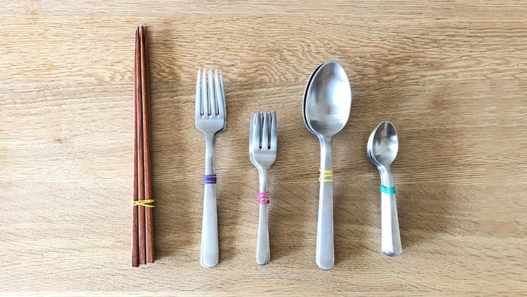 箸やスプーン、フォークなどのカトラリーは、その種類ごとにまとめて縛ります。