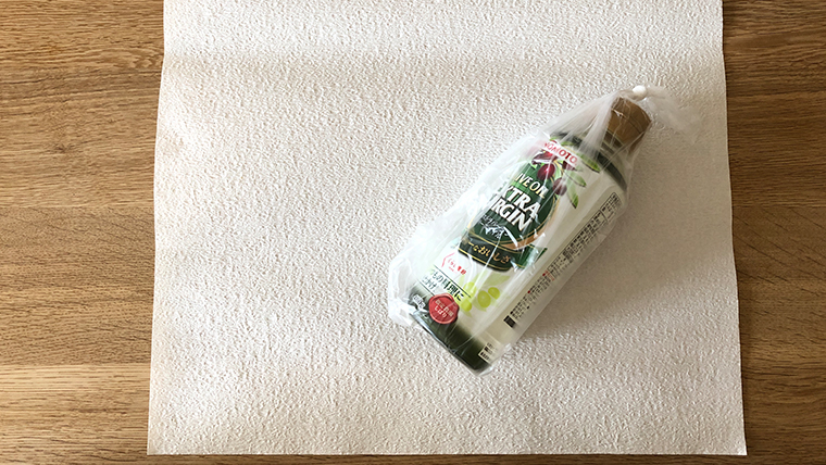 キャップがしっかり閉まらない場合は、ラップなどで口の部分を覆い、輪ゴムやテープで止めます。