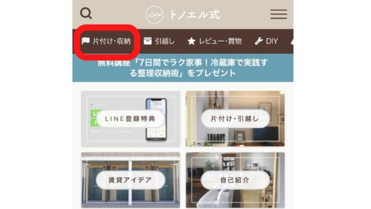 左上のメニュー「片付け・収納」からご覧いただけます。